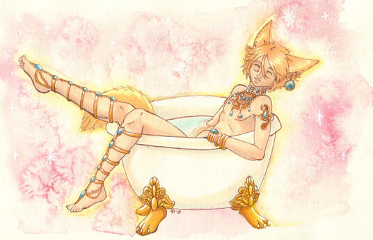 I work primarily in watercolor and Copic markers. Until I figure out how to make a safe place for the (heaping mountain) of smut and NSFW art I've done for the FFXIV 'verse, please enjoy these cheerful pieces. Happy to show off more on request.